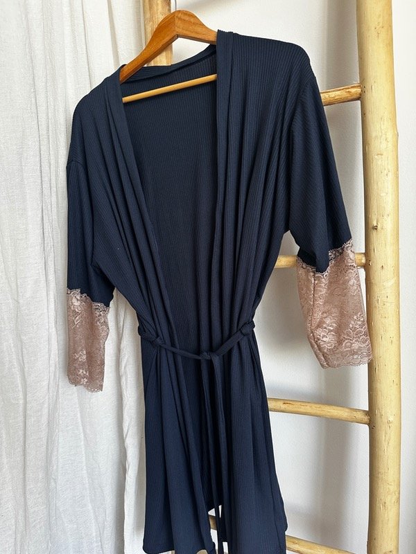 Bata confeccionada en Morley soft con detalle de encaje en manga encaje beige
